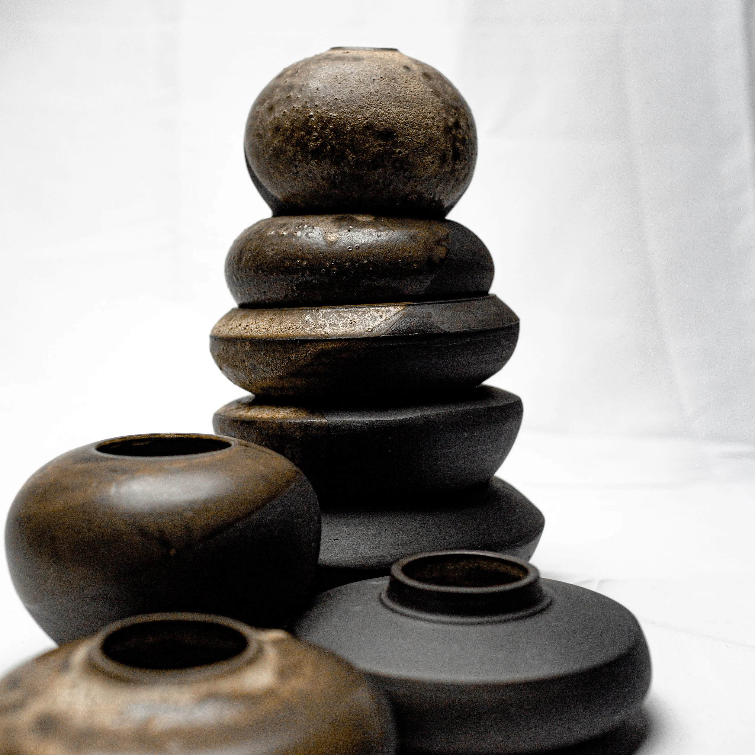 Hand-formed in Cassios ebony clay and finished with a veil of white glaze, the Seven Vestals are vessels made to cradle water in the palm. Each piece represents a day in the cycle of seven, a reminder to drink with intention — to pause, to reflect, to renew. To hold one is to experience ritual in the everyday; to gather all seven is to complete the journey, a week’s meditation carried through shadow and light.